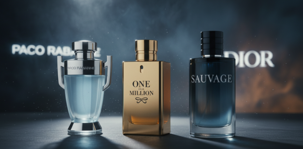 Au début, ma salle de bain ressemblait à un rayon Sephora en version mini. J’avais évidemment mon flacon de Sauvage de Dior (le classique du classique), un One Million de Paco Rabanne pour les soirées, et même un Invictus qui traînait au fond de l’étagère.
